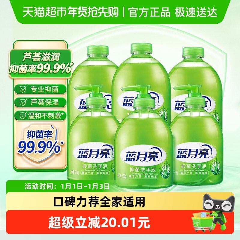 蓝月亮洗手液家用芦荟抑菌滋润瓶装500g*6瓶温和不伤手