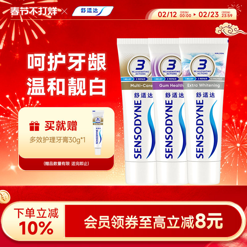 舒适达美白配方抗敏感牙膏300g套装清新口气亮白牙齿护龈含氟清洁