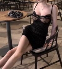 【潮尚夜总会】夜店女装刺绣网纱透视白色露背绑带两件套夏季2022